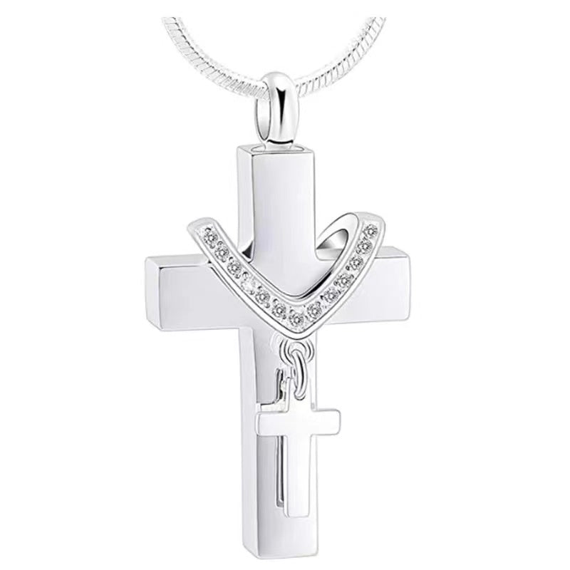 - The unique Double Cross Cremation Pendant is desighed for " 25mm* 20mm*6mm“ and 16 grams perfect size.Free handmade wax rope (45cm+5cm) and beautiful gift box.